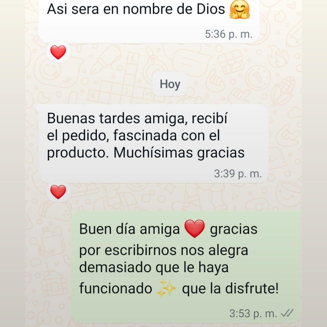 "Recibí el pedido, fascinada con el producto. Muchísimas gracias."
