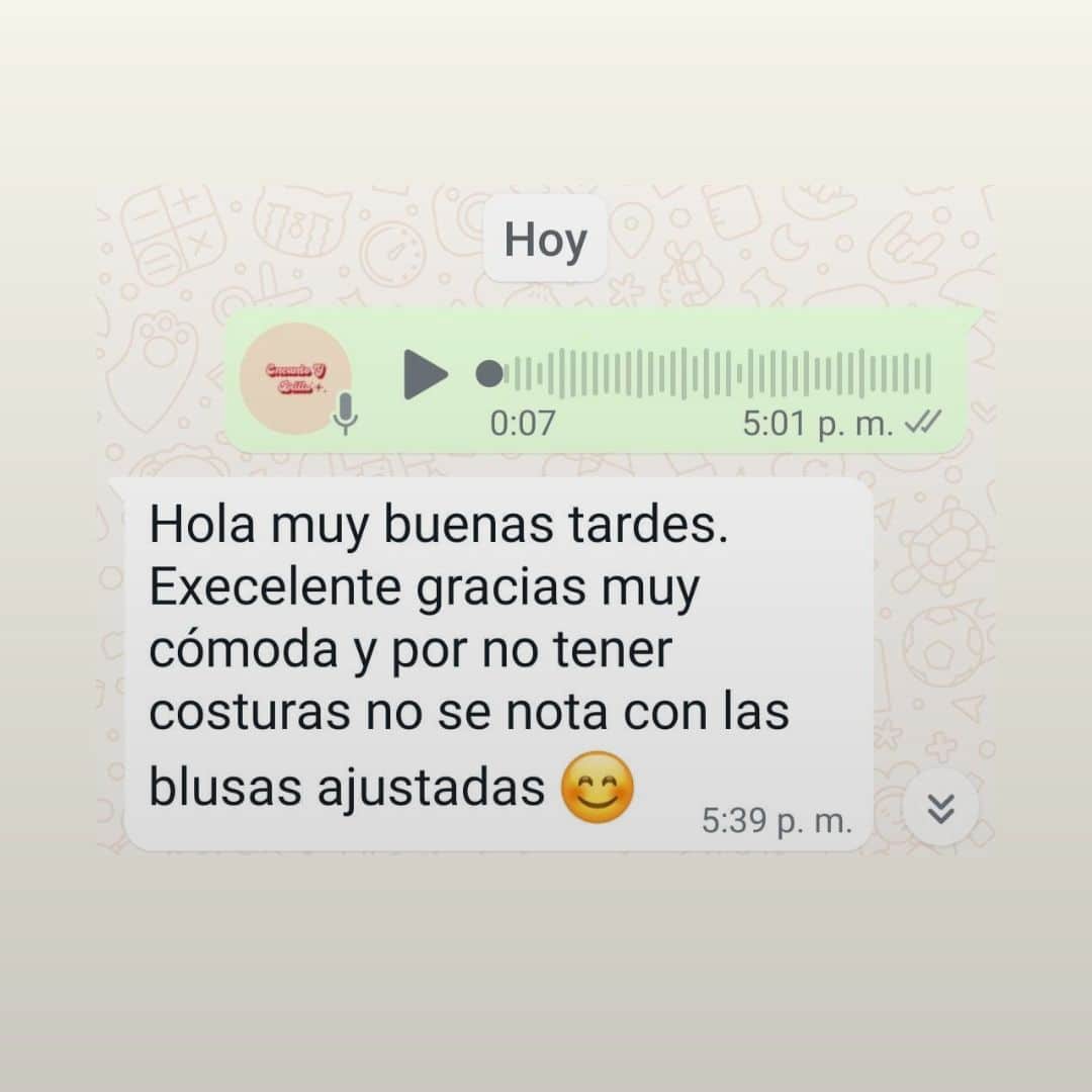 "Excelente, muy cómoda. Sin costuras, lo que la hace imperceptible bajo blusas ajustadas."