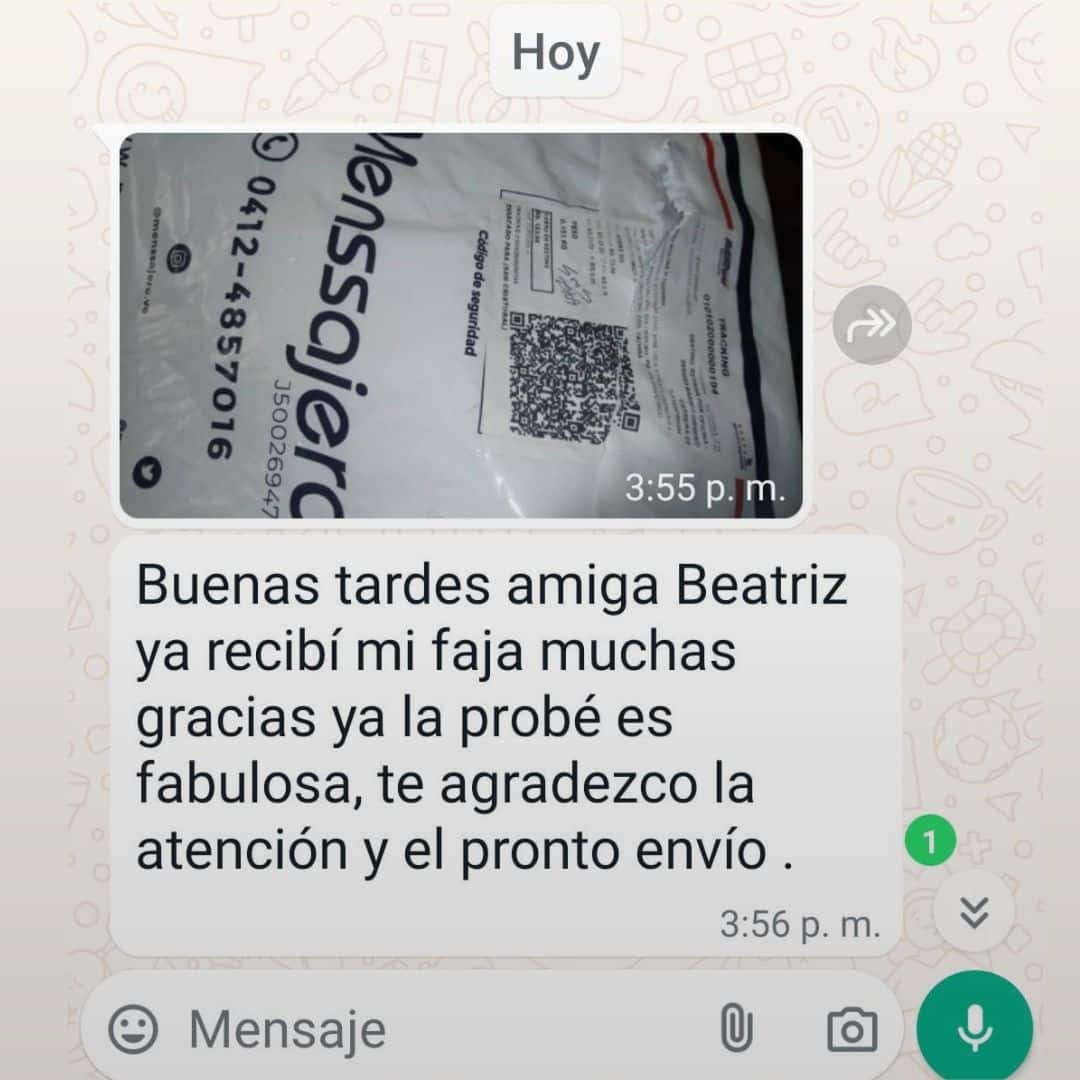 "Feliz noche, hoy recibí mi faja. Mil gracias."