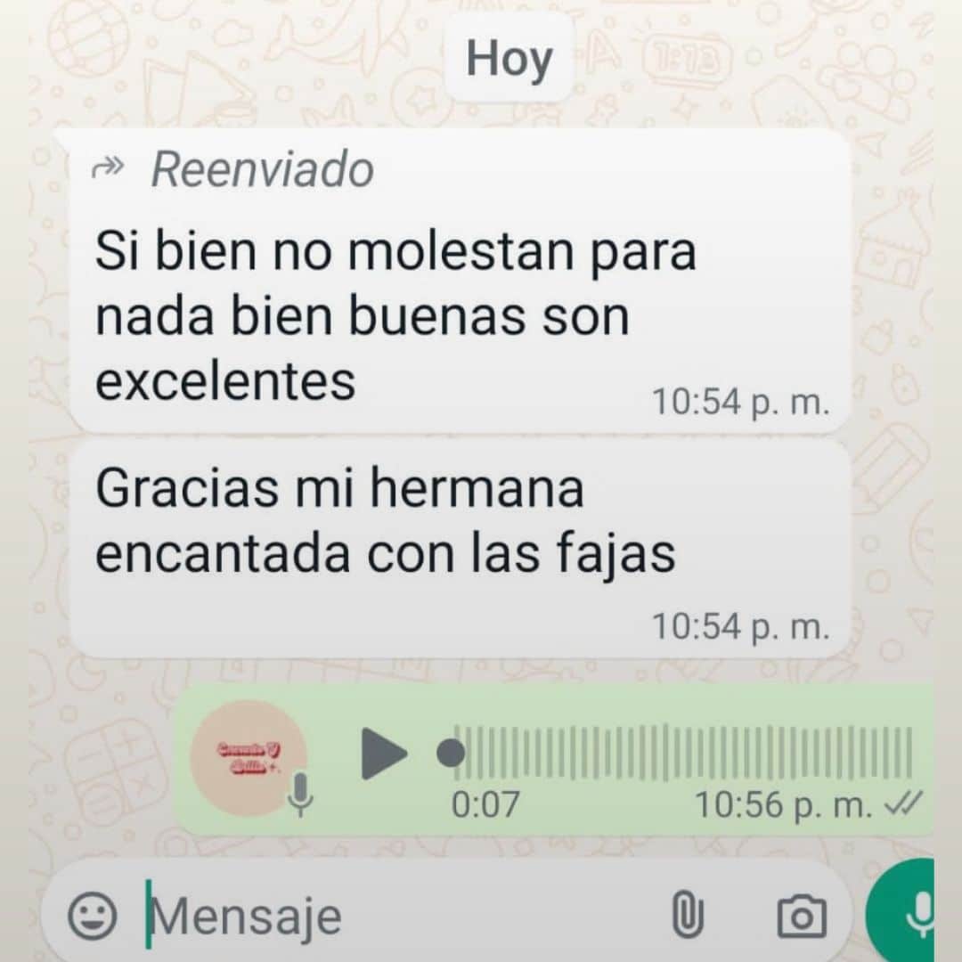 "Feliz noche, hoy recibí mi faja. Mil gracias."